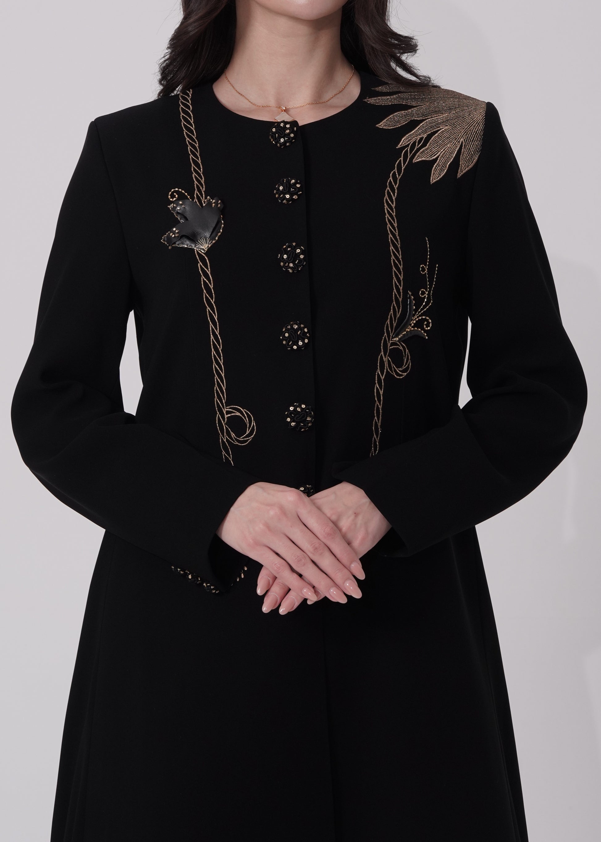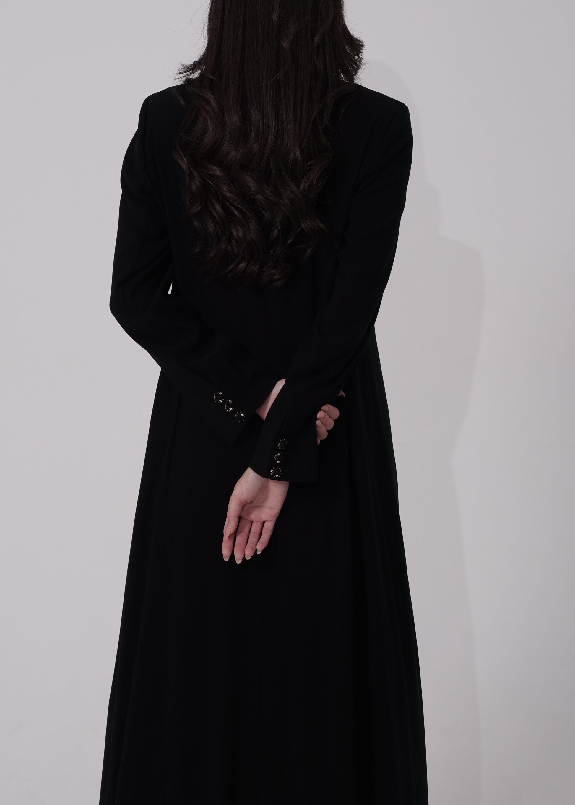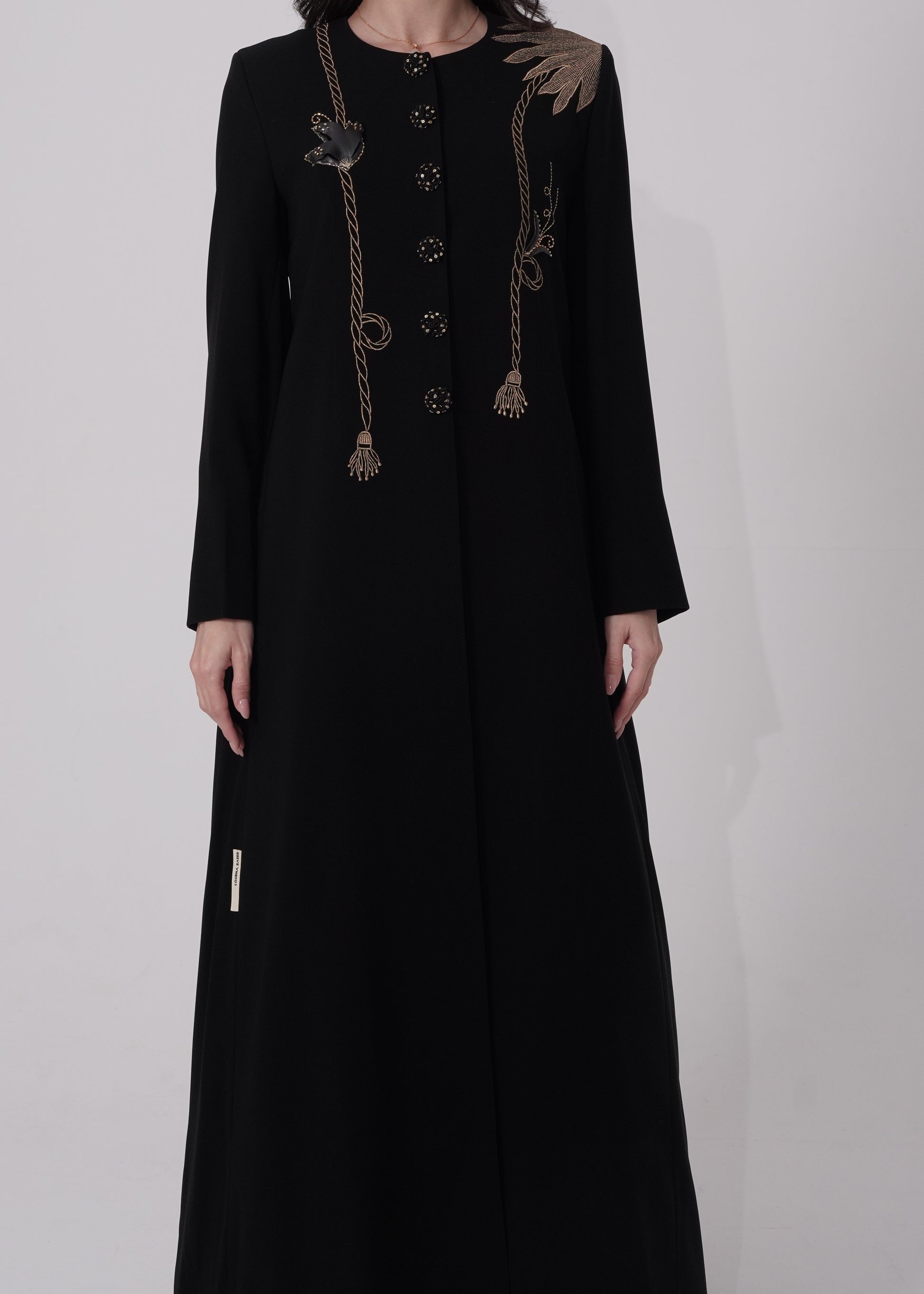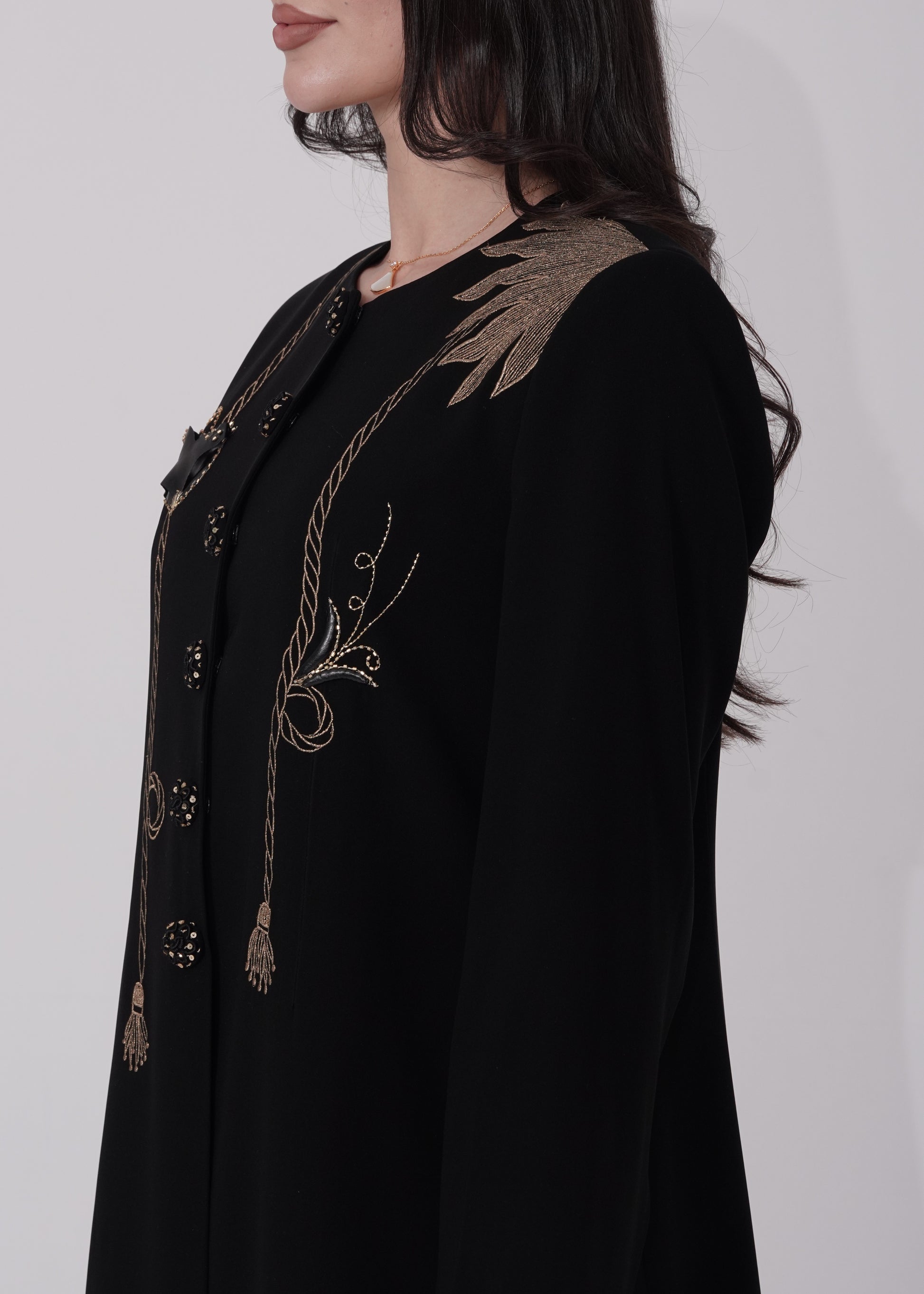 Elevate your collection with this high-end abaya featuring an exquisite front design that sets it apart. Crafted with premium materials and meticulous attention to detail, this piece combines traditional elegance with contemporary artistry. Perfect for those who appreciate luxury and distinctive style. Discover effortless elegance with this crepe fabric abaya